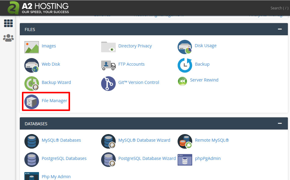 Scroll down the page, and you should find that the file manager will be within the location of your files on your website hosting service (cPanel)