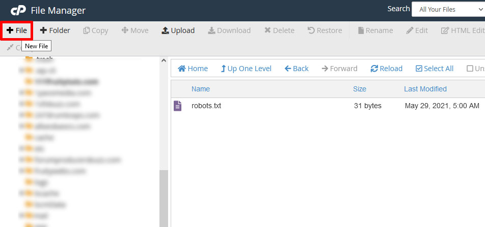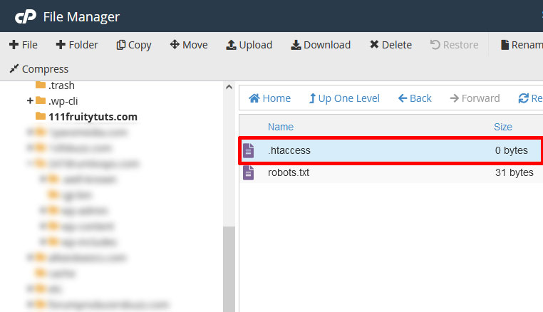 In this case, select the file at the top left-hand side of your file manager. (Highlighted with a red square).
