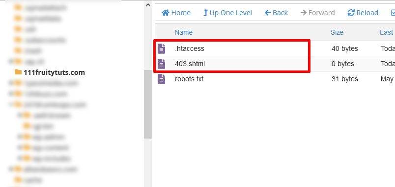 Once you make the "403.shtml" file, you should see it on your server as shown below.